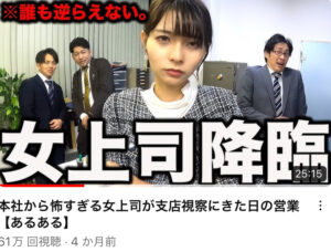 チャンネル登録者数22.6万人(2024年7月現在) YouTubeチャンネル「サラリーマンな日常【あるある】」 準レギュラーで女上司、広瀬役として出演しております。